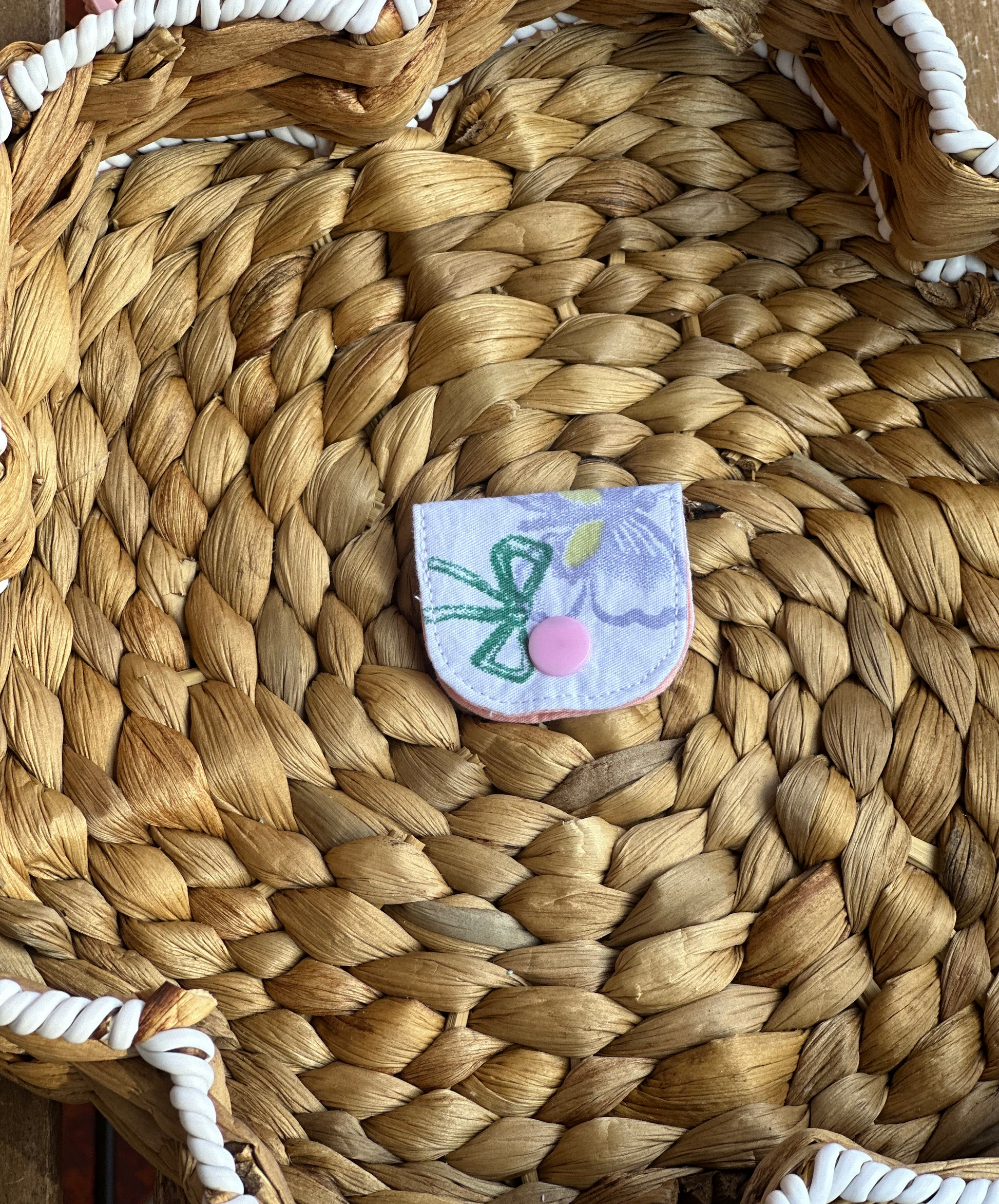 Butterflies cable wrap organises messy cables. Made of 100% cotton fabric and cotton fleece. Approximately 4.5 x 5 cm when closed.